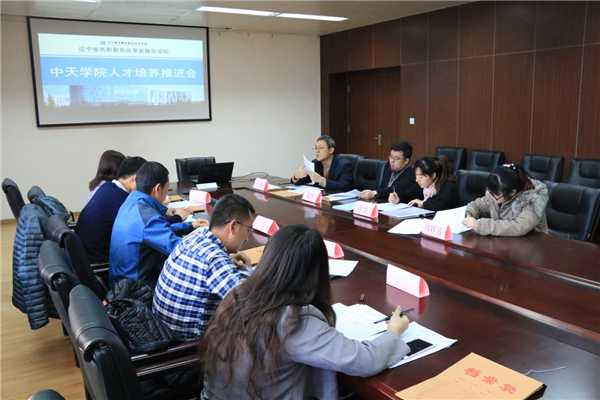 2018年11月16日下午,在学院图书馆第一会议室召开中天学院人才培养推进会。中天建设集团有限公司东北分公司办公室主任陈丽莉,工程处经理张大虎,技术处经理管志祥,设计处经理韩正恳,招聘专员崔苏阳应邀出席会议,建筑工程系主任刘鑫,建筑工程技术专业主任赵凯,建筑工程系校企合作专职副组长张俏参加会议。