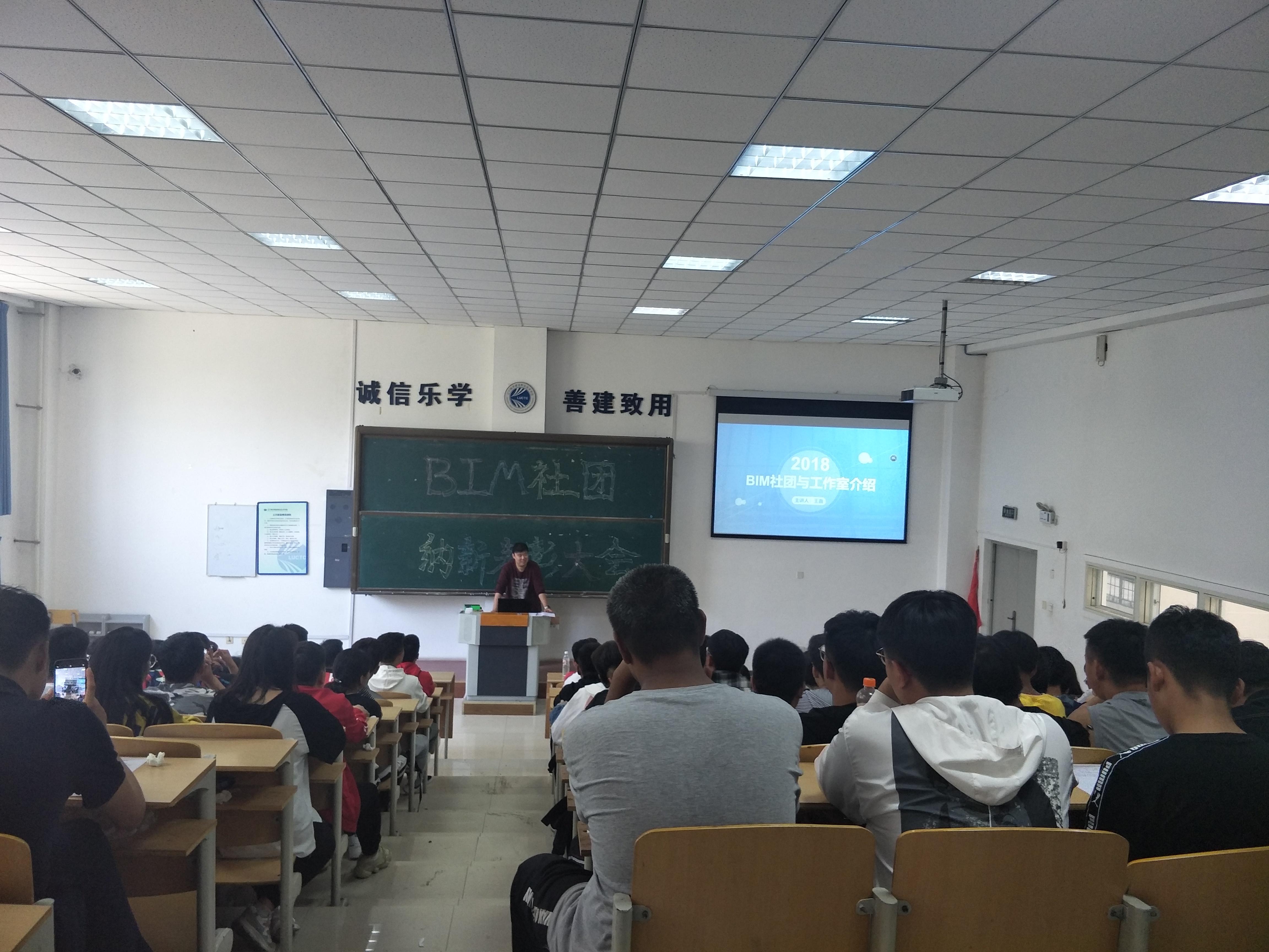 2018年9月20日中午12:30,由建筑工程系举办,由全院2018级学生参加的BIM社团纳新表彰大会在教学楼阶梯101举行。
