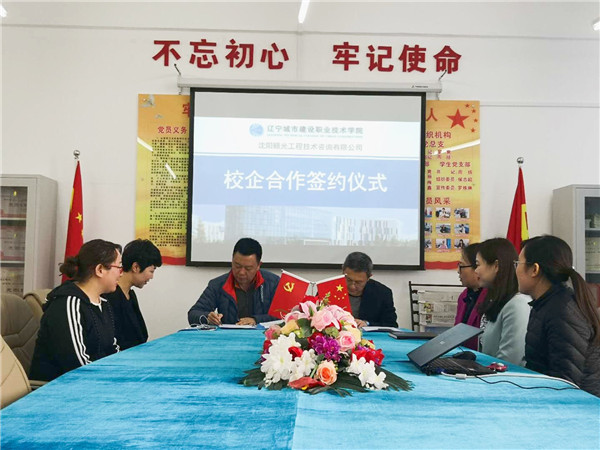 2018年4月13日我院与沈阳颐光工程技术咨询有限公司校企合作签约仪式隆重举行,参加仪式的有企业代表张辉副总和吴巍经理,建筑工程系刘鑫主任、刘丽副主任、监理教研室主任吴佼佼及教研室全体教师。