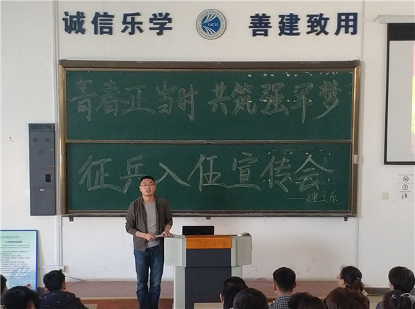 青春正当时,共筑强军梦。2018年5月9日下午,KY开元集团官网入口建筑工程系在阶梯401召开征兵入伍宣传会。学生处武装部徐广池老师,建工系征兵工作辅导员任爱芳,12级学生现役某部队士官申博文,退伍大学生代表刘立凯,建工系学生代表参加了活动。