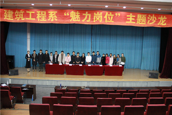 秉承我院“双核心”育人理念精神,建筑工程系于12月15日下午在报告厅举办第六届“魅力岗位”主题沙龙活动。系书记罗爽、副主任刘丽、副书记周扬以及建工系的老师们参加了本次活动。 本次活动共邀请了来自安全、BIM、监理等不同岗位共八位在往届顶岗实习表现优异的学生代表为同学们做魅力岗位实习汇报。