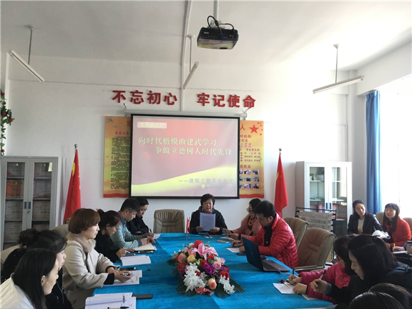 3月16日,建筑工程系党总支党员活动日召开“向时代楷模曲建武学习,争做立德树人时代先锋”党员大会。