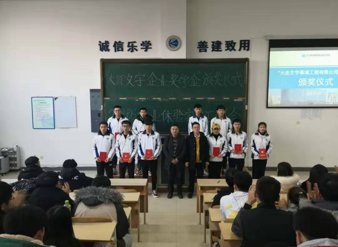 大连文宇幕墙工程有限公司做为建筑工程系校企合作单位捐赠设立“文宇企业奖学金”,目的在于鼓励学生全面发展,成为优秀的复合型技术技能人才。