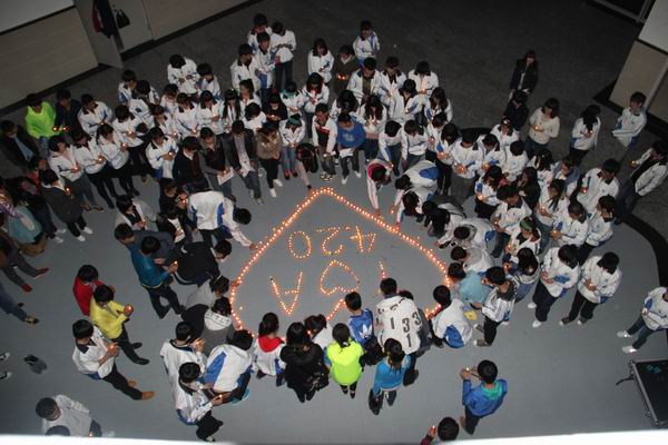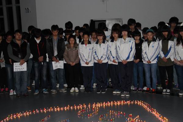 4月25日,建筑工程系团总支、学生会发起了“雅安,我们在一起!”为四川灾区同胞烛光祈福活动。主持人向大家简要通报了灾区的近况,师生们在烛光组成的爱心周围为灾难中遇难的同胞默哀三分钟。