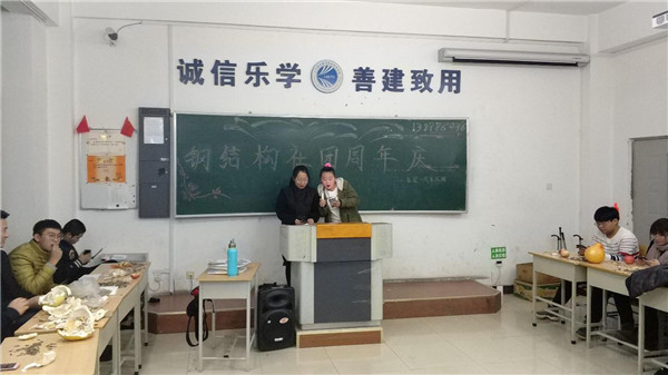 为了丰富学生课余生活,促进社团建设,让社团之花在城建绽放。2017年12月4日,钢结构社团于B418举行了“日积月累,稳中求进”为主题的周年庆活动。
