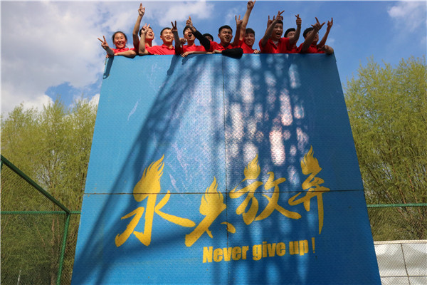 本次大赛共6个队伍参赛,每组10人。比赛分为团队展示、竞赛项目、感悟分享三个环节,其中竞赛项目有旋风跑、袋鼠跳、鼓舞飞扬、竞速攀岩、毕业墙。在活动中同学们相互帮助,相互鼓励,搭着人梯,不抛弃,不放弃,展现了同学们团结协作、顽强勇敢的精神面貌。经过激烈的比赛,CC队、钢铁战士队、蚂蚁团队分别荣获一、二、三等奖。