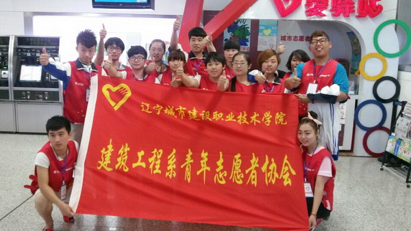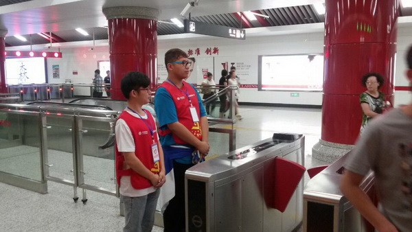 在地铁站做志愿者服务的建工系学生