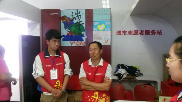 老志愿者邹大爷在向我系志愿者传授宝贵经验