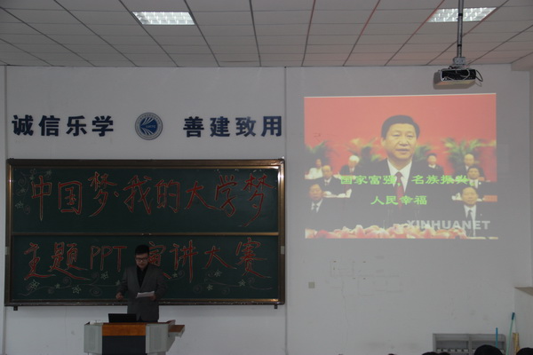 为了充分展示当代大学生积极、健康、向上的精神面貌,激发当代大学生的爱国热情,建工系团总支学生会组织部于12月8日下午15:30在阶梯教室举办了 “中国梦——我的大学梦”主题演讲比赛。 十二名选手以不同的角度和方式表达对中国梦的理解和对祖国未来的美好祝愿。选手们慷慨激昂的演讲感染了在场观众,引起了在座师生的共鸣,在阵阵热烈的掌声中6名选手脱颖而出。