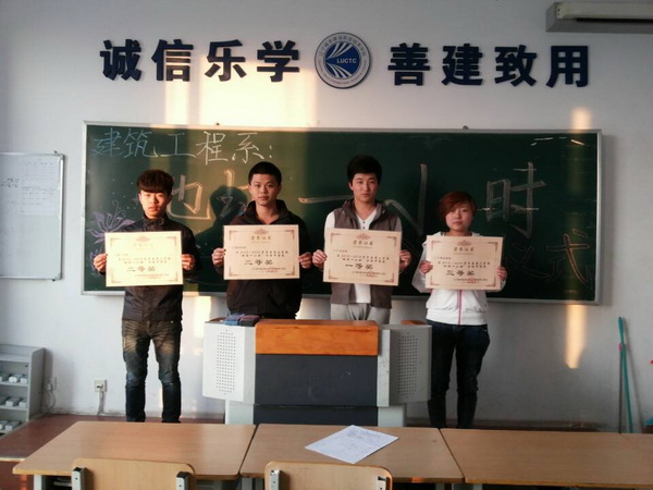 本次活动通过前期的海报宣传与活动前期动员,以寝室熄灯集体到室外做活动的形式来开展,以此面向学生宣传“地球一小时”的活动理念。我系在校的学生积极踊跃地参加到活动中来,为“地球一小时”献出自己的一份力量。寝室熄灯后,同学们在校园路灯处交流学习“地球一小时”活动的主题感想,组织开展集体活动,既节约了资源,还收获了知识。本次活动以展示活动照片形式为评选依据,评选出活动组织第一名13建工5班,第二名13钢结构班、13产业化班,第三名13工程监理班。
