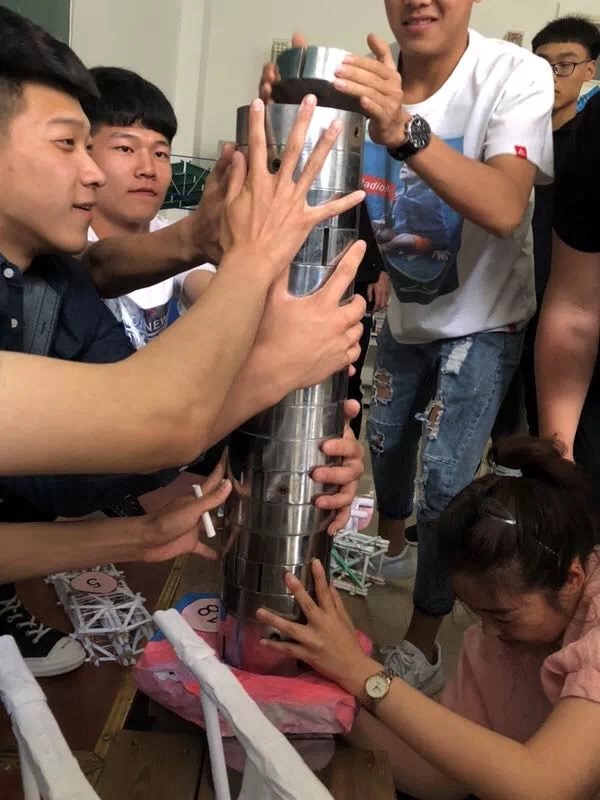初赛地点在识图精英社B119中午12点40分准时举行,目的是选出了第三届中天杯结构模型设计大赛“最佳人气奖”的获得者和通过模型加载角逐出入围决赛的作品。经过各级领导和老师的投票最终由6号作品“毒液”以74票获得了本次比赛的最佳人气奖。同时我们在社团中进行现场施加荷载,我们本着公平、公正、公开的原则进行施压,只要作品能够承受200斤的重量并且没有超过允许下降挠度就能入围决赛,以作品的重量轻重来判决出名次。最后晋级的选手以及他们的得分情况如下: