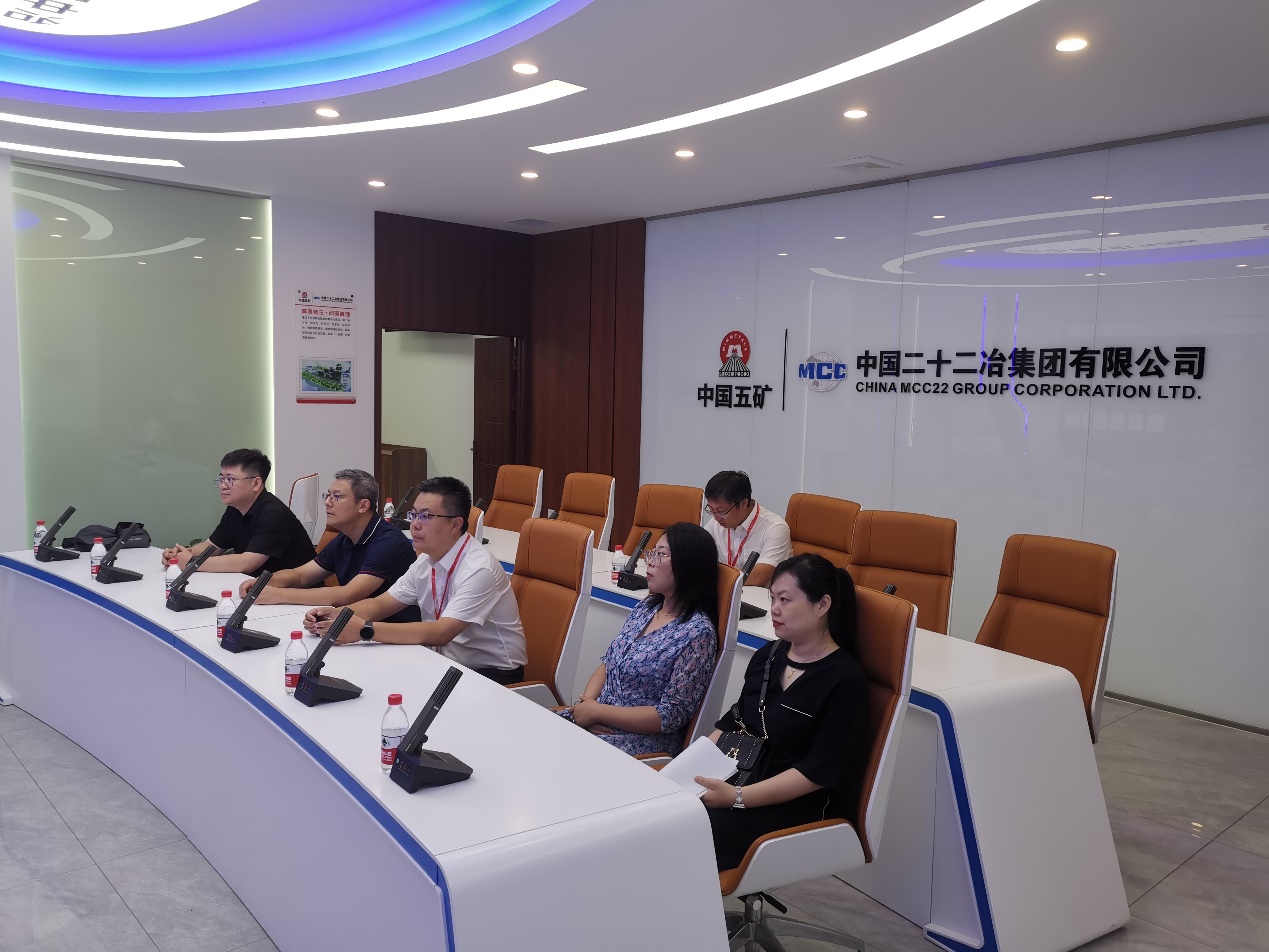 在对中国二十二冶集团有限公司第一建筑工程分公司的走访中,公司总工程师鲍海波介绍了公司的发展历史、产业布局等情况,公司承建了国家、地方重大建设项目的基本情况,以及近几年在科技攻关、BIM技术应用等方面有关成果。学院党委副书记刘鑫简要介绍了学院基本情况、学科特色,学院近年在专业建设、科研成果转化及人才培养等方面的进展等情况,与企业进行深入交流。