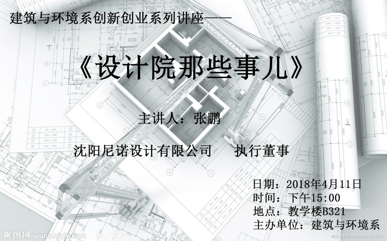 2018年4月11日,沈阳尼诺设计有限公司执行董事张鹏在教学楼B321做了关于《设计院那些事儿》的专业讲座。