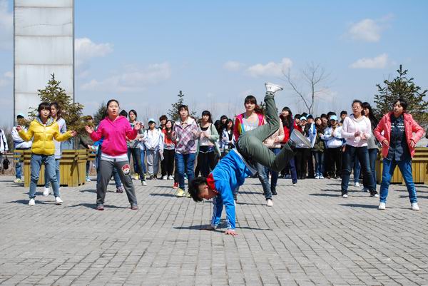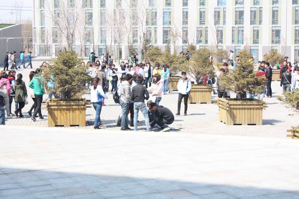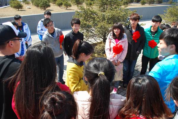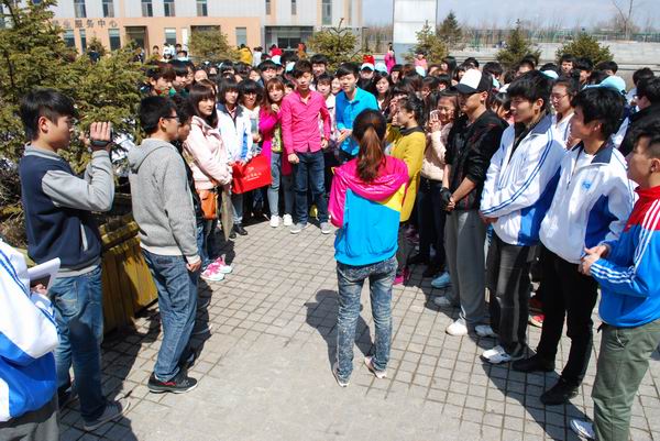 为促进大学生思想道德建设,提高大学生公德意识,展示学生的精神面貌和青春风采,我系举行“踏寻雷锋足迹,绽放道德光芒”校园公益快闪活动。 4月10日中午,正值下课时分,教学楼北门前人流如织,一名同学不小心将手里抱着的一大堆书本散落在地。看到这一幕,立刻有五名路过的同学上前帮她拾起。这时,隐藏在人群中的快闪团队热烈鼓掌,为他们佩带红花,同时开始精彩的公益快闪舞蹈show。
