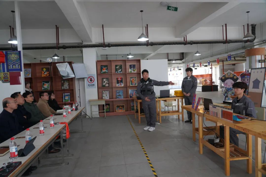 会后,调研组参观了学校古建筑地仗彩画虚实结合传承基地。在基地,大家共同观看了学生们所作的“数字赋能古建新生:关帝殿外立面保护性装饰设计”的专题汇报。该汇报由学生团队通过模拟展示他们所创办的古建装饰公司完成古建装饰设计项目的实施过程,并展示了KY开元在新时代装饰设计教学改革方面的成就。