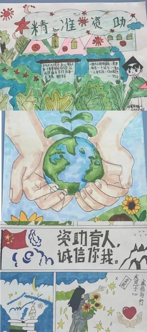 以上作品是评选出的优秀绘画作品,每个同学都通过自己独特的视角,分别展示了关于诚信、感恩,防范风险等主题内心感悟和承诺。获得奖学金和助学金的同学承诺将更加珍视国家和学校所提供的支持,努力不辜负学校的期望。同时,其他同学也意识到了合理消费的重要性以及不良校园贷款的风险,坚定了成为自力更生、奋发向上的新时代青年的决心。