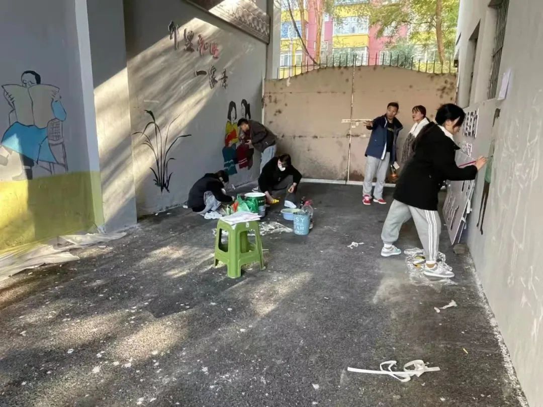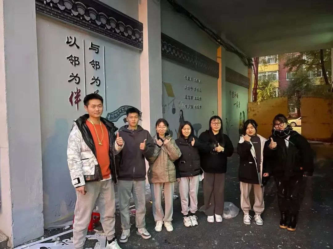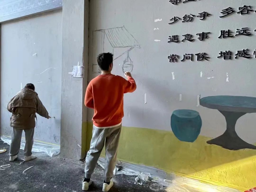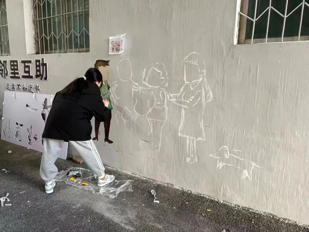 志愿者们不畏冬天的寒冷用爱心,热情温暖着社区,认认真真的绘制画作。冬天的寒冷,导致了染料难以调色,但志愿者们也克服了困难,耗时三天完成了社区的美化,用自己的精神来鼓舞居民邻里之间和睦相处。