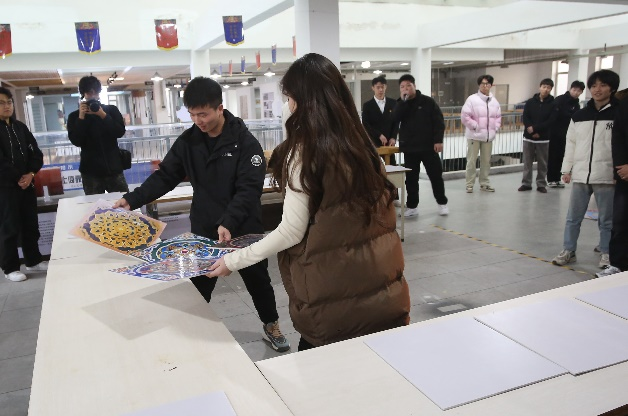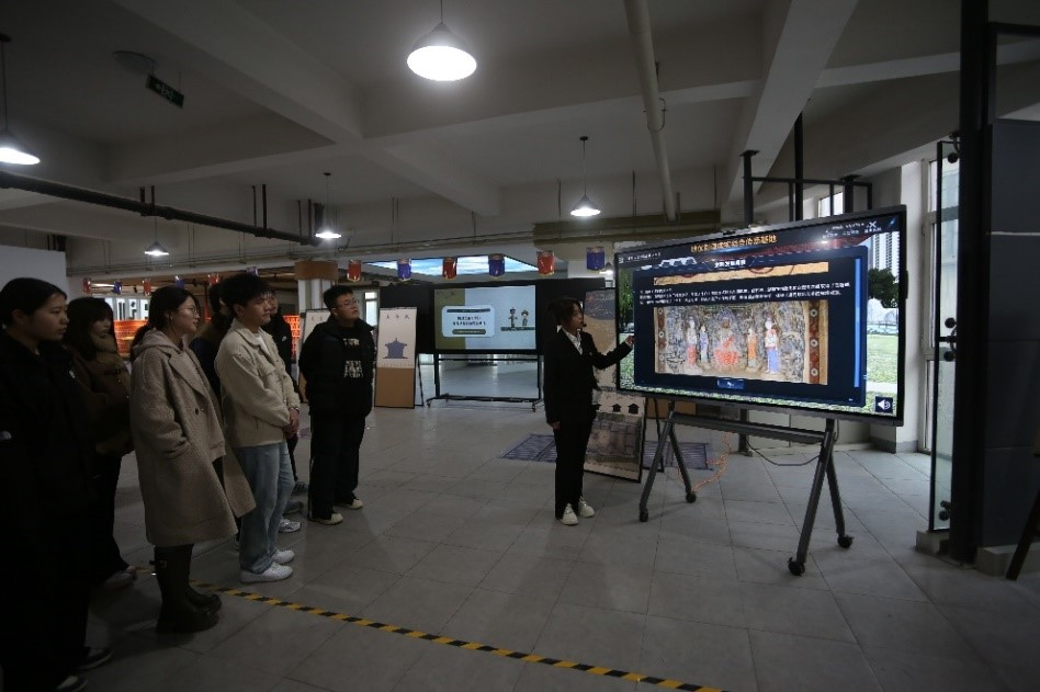 地仗彩画被赋予“木衣锦绣”的美誉,其精湛的工艺与绚丽的色彩,是中华民族古建筑艺术领域中的璀璨明珠,也是我国非物质文化遗产中不可或缺的宝贵财富。 活动中,讲解员通过“地仗彩画虚拟仿真项目”系统为学生们进行了详细讲解,在其引导下,大家逐一参观了古建筑地仗彩画虚实结合传承基地。基地内一件件精美的“工艺品”,让学生们了解了地仗彩画的历史脉络与操作工艺,回溯了跨越五千年的文化传承,领略了以“木衣锦绣”闻名于世的精湛技艺。沉浸式参观后,学生们深切感受到古老技艺穿越时空的匠心神韵,体悟到当代青年学子在文化传承中的使命与担当。