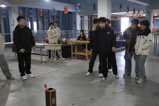 活动现场,学生们还积极参与了“地仗彩画知识快问快答”“地仗彩画图案消消乐”“地仗彩画虚实结合文创打卡”“投壶”等活动,进一步领略了古建筑地仗彩画这一传统技艺的独特魅力。