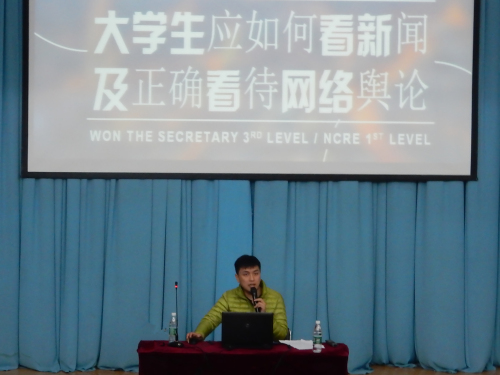 校外辅导员孙晨添结合自身的大学成长经历和步入社会的工作阅历,深入浅出的讲述了如何以匠心认真雕琢人生,专注梦想,执着如一。鼓励刚刚步入校园的同学们,无论面对学习还是生活,无论身处顺境还是逆境,都要保持进取的心态,用刚毅坚卓的品格不断成就人生的辉煌。一个小时的讲座中掌声此起彼伏,同学们在孙老师风趣、幽默和富有亲和力的感染下,消除了初入大学的迷茫、困惑,更给同学们的大学规划带来了启迪和鼓舞。