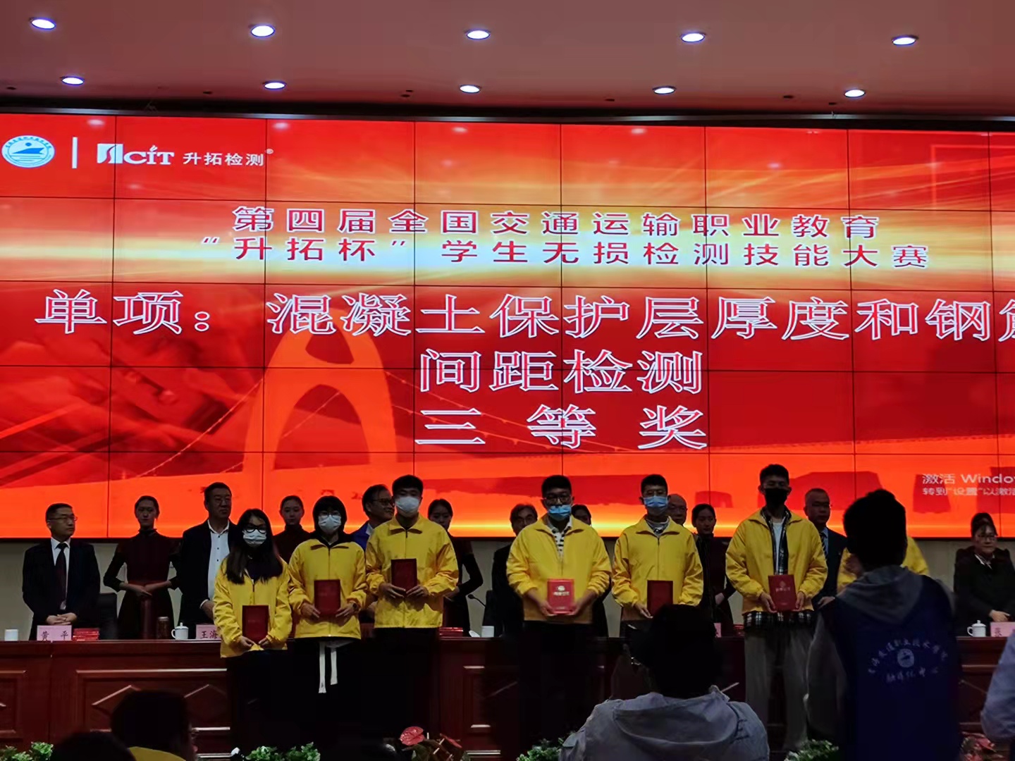 9月22日-26日,第四届全国交通运输职业教育“升拓杯”学生无损检测技能大赛在青海省西宁市成功举办,我院市政工程系组织学生参加了比赛。经过激烈角逐,我院学生获得混凝土保护层厚度和钢筋间距检测项目三等奖1项。