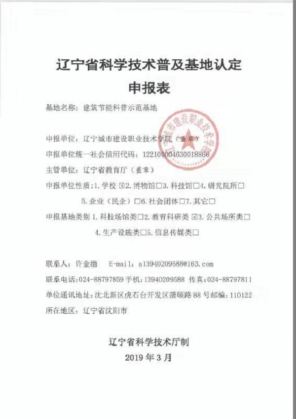 日前,省科技厅会同省科协共同组织开展了2019年度辽宁省科学技术普及基地评审认定工作。经主管部门推荐、专家评审、现场考察,由我院建筑节能研究所、科研处申报的“建筑节能科普示范基地”成功被命名为“辽宁省科学技术普及基地”。