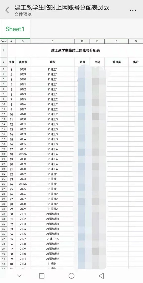 为解决学生在寝室上网课网络流量费用支出较大的问题,学院第一时间争取到网络运营商--联通公司沈阳分公司的大力支持,在技术人员不进校的情况下,开辟绿色通道,加派人手,连夜远程开通临时校园免费无线上网账号600个。学生处制定了《在线学习专用无线网临时账号管理办法》,将临时账号根据各系寝室数进行分配,由辅导员第一时间点对点派发到各个寝室,其中580个账号由各系进行管理,跨系混寝及民族班学生等20个账号由学生处统一管理,建立账号管理员台账,做到专人管理。这600个上网账号最大程度满足了学生在线学习用网需求,为学生解决了燃眉之急。