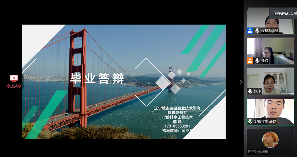 根据疫情防控情况,学院在2020届毕业生答辩中首次采用了全在线方式。答辩通过腾讯会议平台开展,学生按照答辩顺序进入云端答辩室,以PPT投屏共享、作品展示等形式陈述毕业设计(论文)的主要观点、基本内容和创新之处,答辩评审专家根据论文撰写质量、设计作品讲解、回答问题等情况进行了综合评定。学院教务处、教育教学评价处分组对各系毕业论文(设计)答辩工作进行了在线检查。整体答辩工作运行情况程序规范,秩序井然。