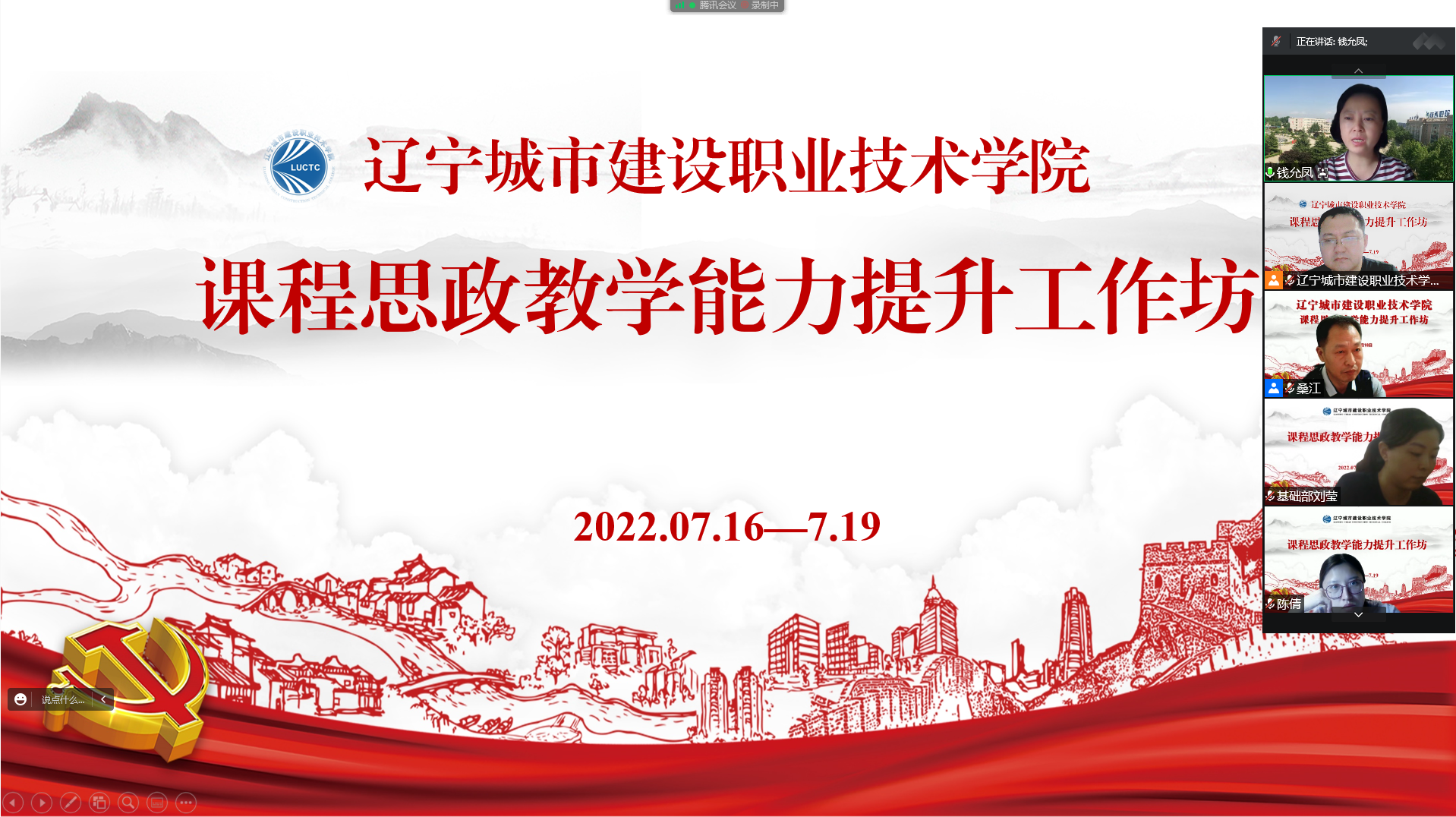 本次培训通过腾讯会议平台开展,邀请陕西工业职业技术学院、黑龙江建筑职业技术学院等国内先进院校的国家课程思政教学名师、国家课程思政示范课程团队负责人主讲。16日-17日,专家面向课程思政理念、国家政策剖析、示范课程申报问题分析与对策等做专题讲座,并分享了国家级课程思政示范中心、国家级示范课程申报经验;18日-19日,专家针对各系推荐的7个课程思政示范课堂立项团队进行了一对一的指导,后续还将对各团队进行跟踪指导。