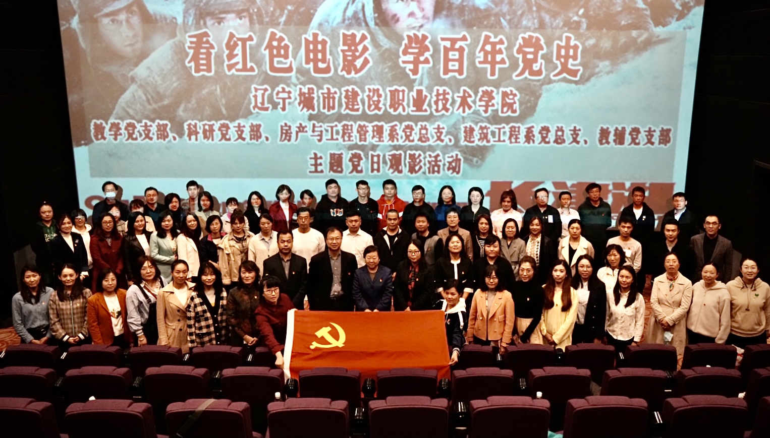 10月15日,为持续深入开展党史学习教育,进一步加强党员的思想教育,弘扬爱国主义精神,增强基层党组织的凝聚力,教学党支部、科研党支部、房产与工程管理系党总支、建筑工程系党总支、教辅党支部共同开展观看爱国主义教育影片《长津湖》主题党日活动。学院党委书记高玉英同志、院长王斌同志以及5个党支部党员共计70余人参加活动。教务处全体党员参加。