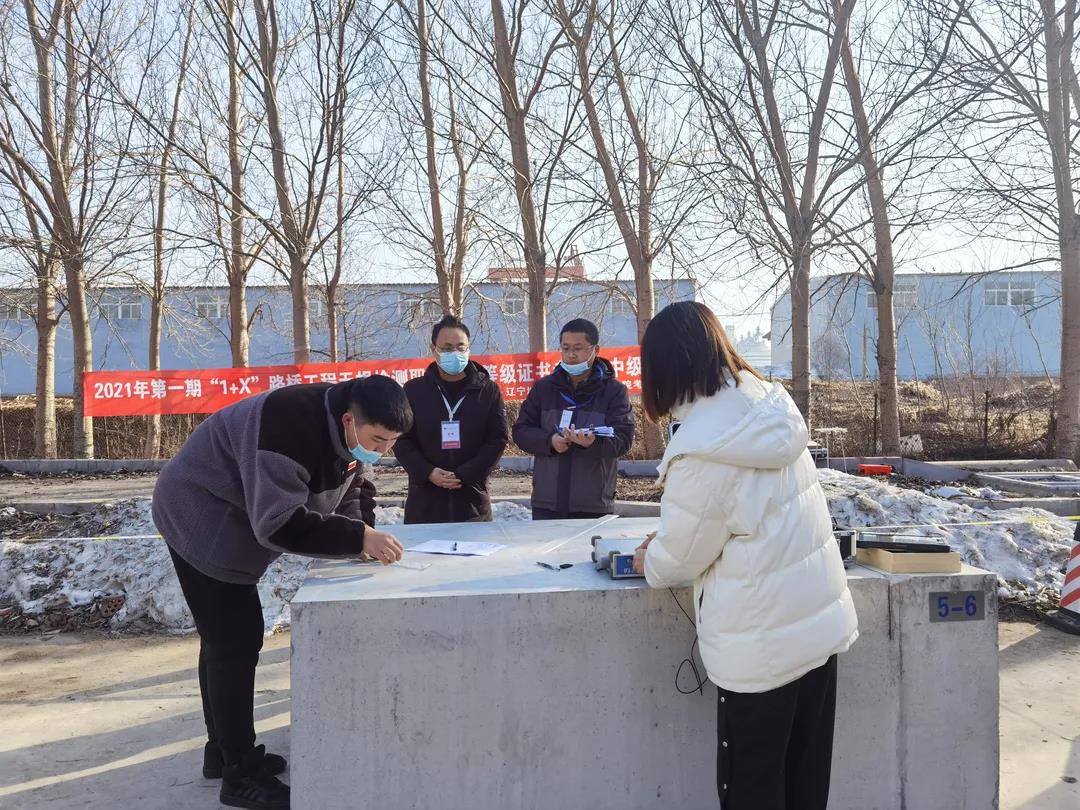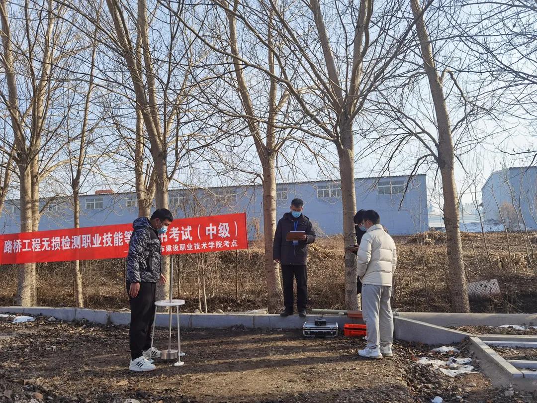 “1+X”路桥工程无损检测职业技能等级证书(中级)考试严格按照教育部相关规定和“1+X”路桥工程无损检测职业技能等级考核相关标准有序进行,现场随机抽取考试项目、工位号及测区。考试项目为混凝土项目:混凝土厚度(冲击回波法)、混凝土裂缝(pc相位反转法)、混凝土内部缺陷(冲击回波法),三选一;其它项目:锚杆长度(冲击弹性波法)、立柱长度及埋深、钢筋分布及保护层厚度、路基回弹模量(落球法),四选一。考生两人一组。