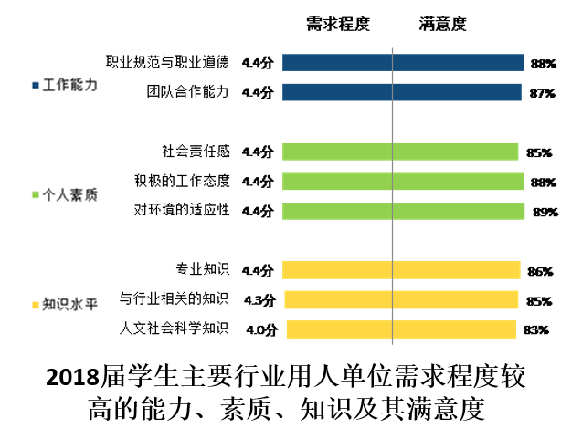 第三方专业机构麦可思数据公司实施的用人单位跟踪评价项目和毕业生质量调查项目显示,学院2018届毕业生有74.5%在辽宁省就业,为省内企业发展提供了有力支持;用人单位对学院应届毕业生的总体满意度为94%,在聘用过学院应届毕业生的用人单位中,有43%认为毕业生整体表现高于平均水平,用人单位对2018届毕业生在“职业规范与职业道德”、“团队合作能力”