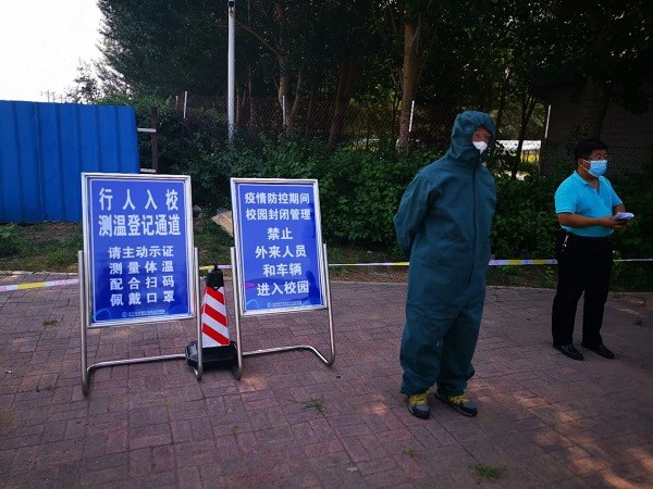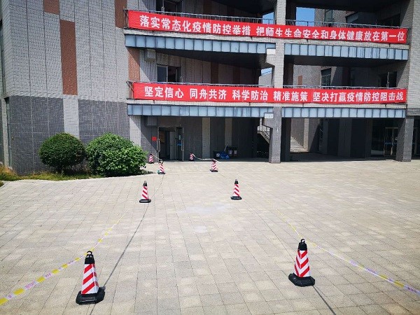 学院在校园南区和北区分别设置了出入口,南北区之间人员不交叉。考生进入校园、进入考场严格测量体温,查验准考证、身份证和健康码。考生根据所在考场进入专用通道,定点站位,间隔一米以上,由专人引导按顺序入场。如考生体温出现异常,将考生带入临时等候区,按照学院《2020年春季学期疫情防控工作方案》相关流程进行处理。考场内贴有路线引导和通行标识,确保考生可以迅速有序进场、退场。