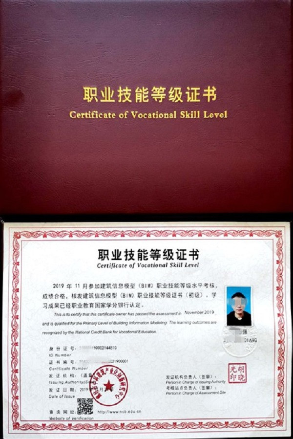 学院建筑信息模型(BIM)职业技能等级证书001号证书