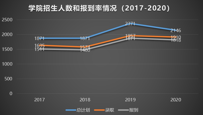 随着国家深化考试招生改革的不断深入,对招生工作带来的冲击和影响逐步凸显。面对年来,特别是疫情期间招生工作出现的新形势、新情况,学院全力做好招生工作,招生计划、录取人数、报到率保持良好增长,考生和家长认可度逐年提升,报到率逐年增加,近两年保持在95%以上,高居全省前列。