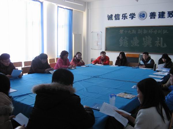 温花春老师回顾了本期新教师培训班的各项活动,各位新教师交流了学习心得和体会。教务处处长谭禾丰讲话,她肯定了新教师们一学期来的学习收获和取得的成绩,希望大家将新教师培训作为新起点,刻苦专研,积极参加课程改革,全面提高自身职业素质,为学院示范校建设和未来发展做出应有贡献。