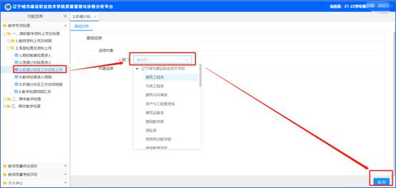点击左侧功能菜单【教学专项检查】-【期初教学资料上传及检查】-【系部检查及资料上传】-【系部教案及授课计划检查录入】进入教学检查数据录入页面。,添加基础信息及检查情况,完成后点击“预提交”即可。