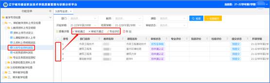 五、“专业”操作:课程资料评价及审核