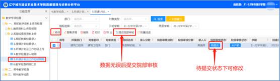 数据确认无误需要后提交进行院部审核。
