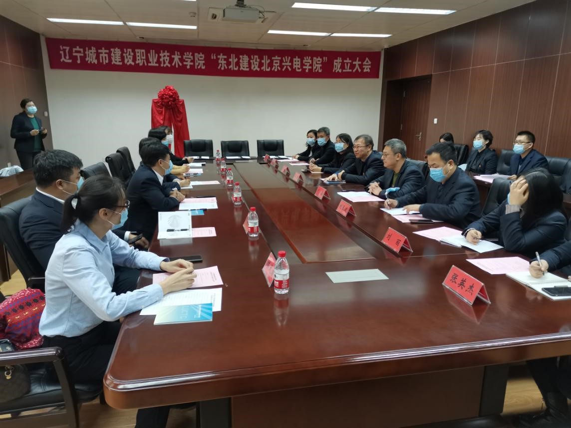 | 12月22日,我院二级学院——东北建设北京兴电学院揭牌仪式在我院举行。沈阳东北工程建设发展有限公司总经理宋建辉、副总经理张跃琦及人事部长林天双、北京兴电国际工程管理有限公司东北分公司总经理高玉伟、人力资源总监刘丽芳及人力资源副总监王兵、学院院长王斌出席大会。学院设备系、建工系、教务处、学生处、校企合作处相关负责人参加大会。会议由教务处处长刘鑫主持。