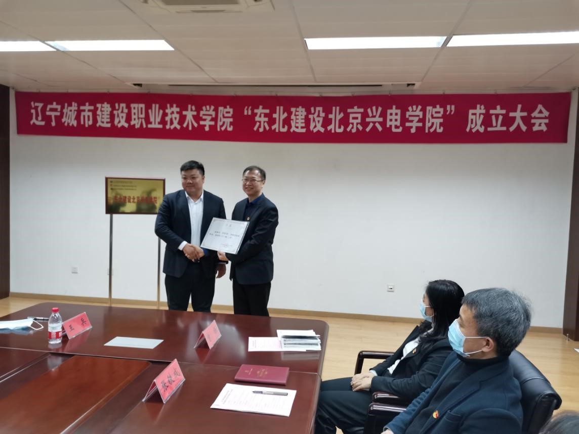 宋建辉总经理作为企业代表讲话,他指出校企联合是学院发展的需要,更是企业发展的需要,也是企业反哺职业院校、推动教育事业发展的应尽责任。通过合作,校企双方可以优势互补,资源共享,达到互相促进、共同发展的目的。二级学院院长高玉伟在讲话中指出,未来北京兴电国际工程管理有限公司东北分公司会为二级学院建设给予物力、财力、人力的支持,认真履行协议约定,本着“合作共赢”的原则,与学院和沈阳东北工程建设发展有限公司的同仁们并肩前行,共同为二级学院的发展做出贡献。