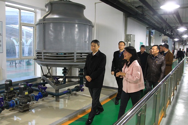 学院领导陪同冯厅长考察了建筑设备综合实训场,设备系主任宋梅介绍了实训场的规模、主要功能、实训项目及开展的社会服务等情况,并参观了部分机组设备运行情况。