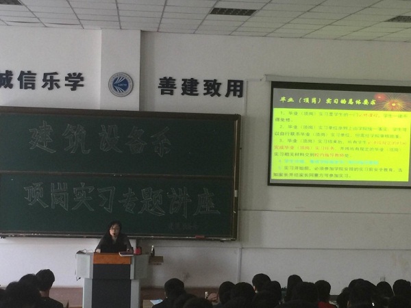 2017年4月14日,建筑设备系组织召开了“顶岗实习专题讲座”。讲座由孙岩老师主持,建筑设备系全体教师学生参加。本次报告主要针对是15级顶岗实习工作,讲座包括三个部分:顶岗实习要求、顶岗实习安全教育、及如何做好毕业论文三个部分。