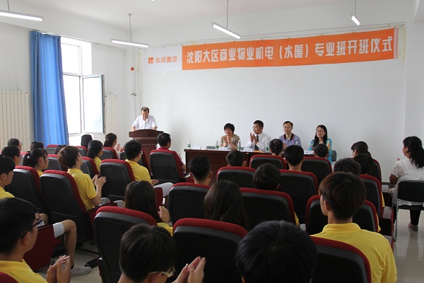 会议开始由建筑设备系宋梅主任介绍校企合作模式、人才培养目标以及教学安排。辽宁城建学院院长王斌寄语同学们在未来的学习和生活中要努力学好文化课、专业课,积极参加各项实践活动,切实体会和感受校企合作办学的优越性。随后,华润置地(沈阳)商业物业管理公司总经理金永对2015级新生加入商业物业水暖专业班表示热烈欢迎。并在接下来的时间为2015华润水暖班的学生上了一堂生动的华润企业文化课程。他表示希望通过校企合作,实现资源共享,为企业培养专业基础扎实、能力强的应用型、创新型、复合型人才。