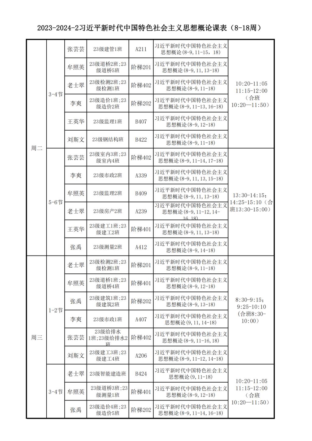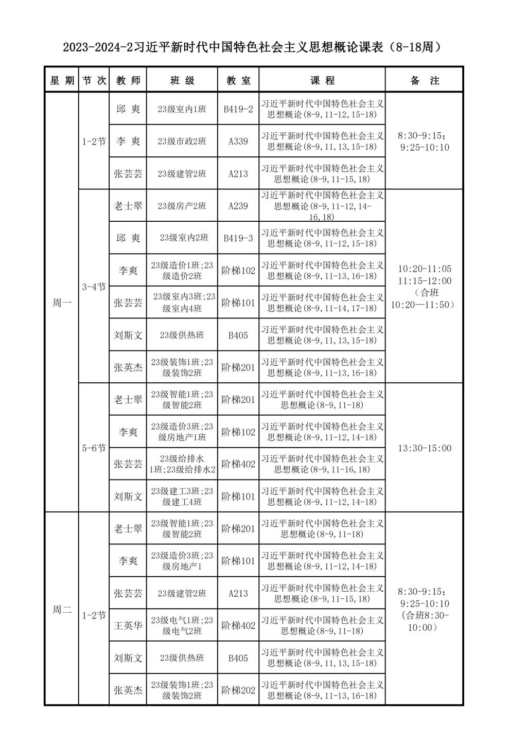 2023-2024-2学期 习近平新时代中国特色社会主义思想概论 课程课表