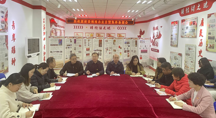 在召开现场办公会之前,王斌、徐长伟、刘鑫、王艳东参加了习近平新时代中国特色社会主义思想概论教研室集体备课会。聆听了马克思主义学院习近平新时代中国特色社会主义思想概论教研室主任以“习近平新时代中国特色社会主义思想是如何创立的”为题的示范教学,并和思政课教师一起对思政课的教学设计进行了深入的探讨。