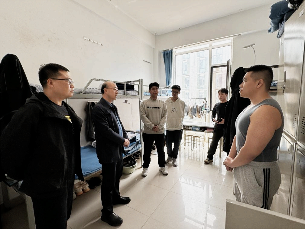 走访期间,徐长伟实地察看了学生社区的设施设备、卫生环境和安全情况,与学生们亲切交谈,仔细询问学生的学业情况和实习就业意向,鼓励大家以更加饱满的精神和心态迎接即将开始的岗位实习。