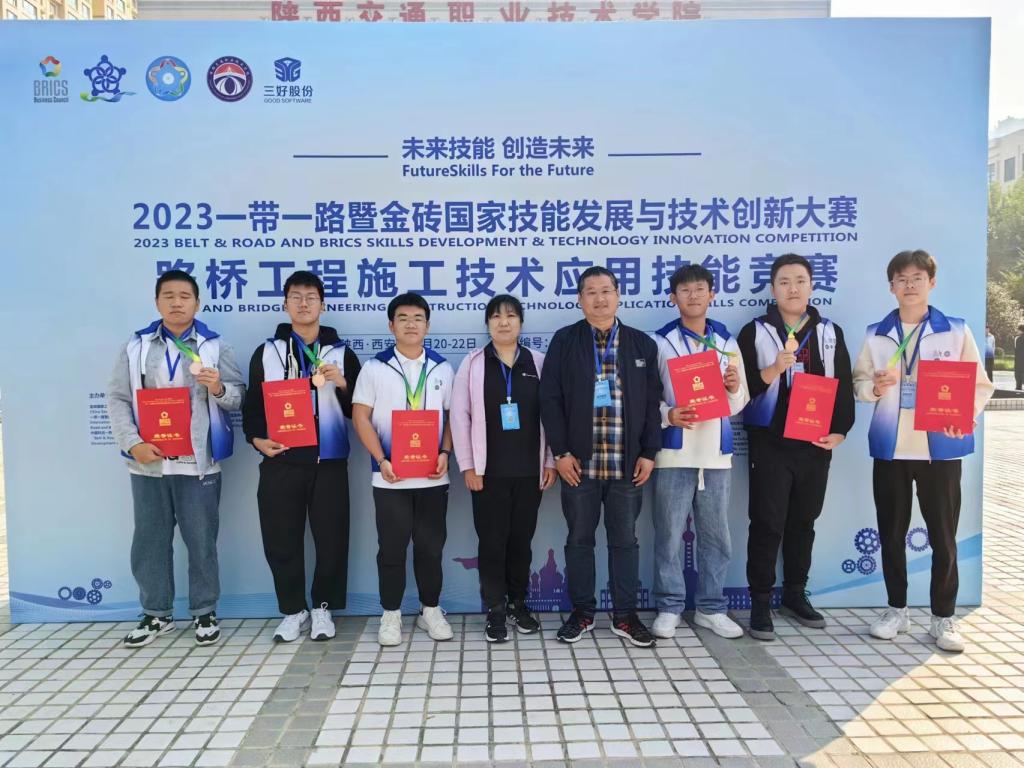 10月21日-10月22日,2023"一带一路"暨金砖国家技能发展与技术创新大赛——路桥工程施工技术应用赛项决赛在陕西交通职业技术学院举办。决赛共有来自全国28个省份地区的179所院校、323支队伍、1500多名师生参加。由黄健、汤美娜、范炳娟3位老师指导的2支参赛队伍成功入围决赛,并荣获2个决赛三等奖。