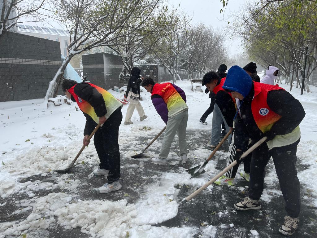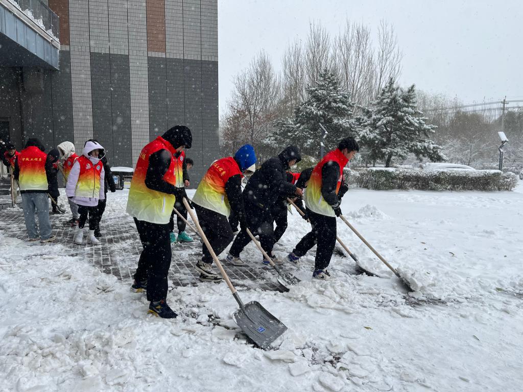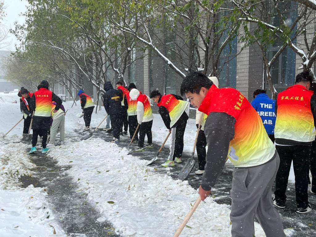 昨天,2023年入冬后第一场雪给师生的出行带来一定不便。市政工程系组织22级入党积极分子及时清扫道路积雪,让城建校园在寒冷的冬季增添了一丝暖色。