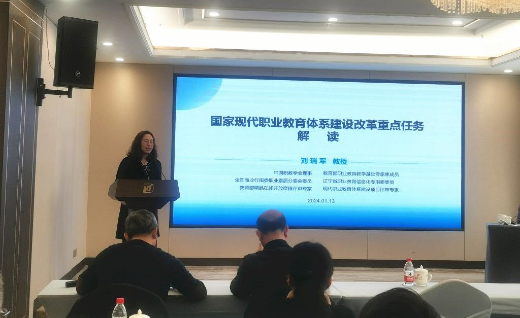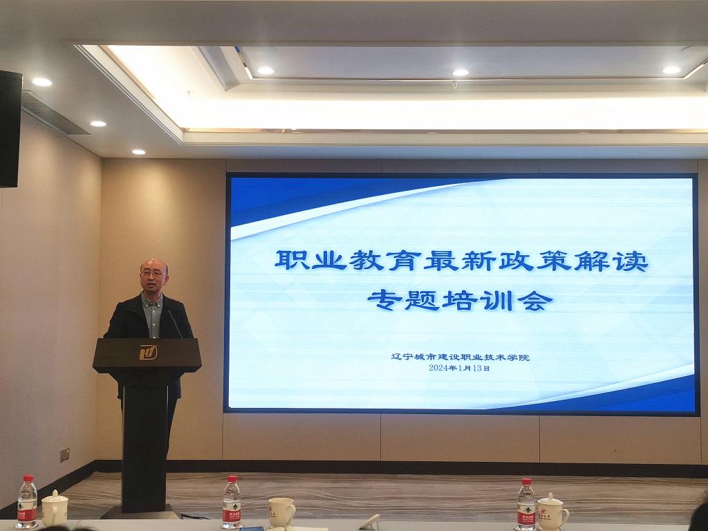1月13日下午,学院在辽宁大厦召开职业教育最新政策解读专题培训会,会议邀请沈阳职业技术学院刘瑞军教授作国家现代职业教育体系建设改革重点任务解读,学院院长徐长伟、党委副书记刘鑫出席会议,各二级学院正副职、教研室主任,双卓越项目建设组组长及四级项目主要负责人参加会议,会议由规划与科研处处长张国静主持。